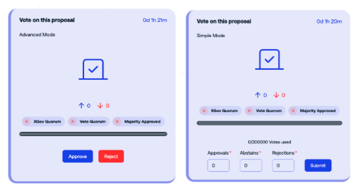 There is an advanced voting mode for governors who want to abstain or split their votes among different options: abstain, approve, and reject.