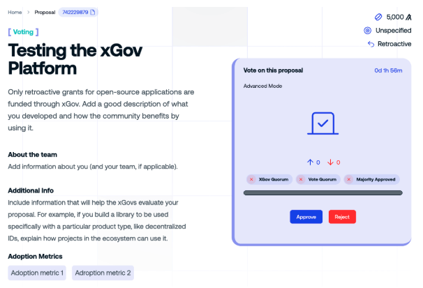 - Enrolled as an xGov in this platform by paying the one-time enrollment fee of 10* Algo.